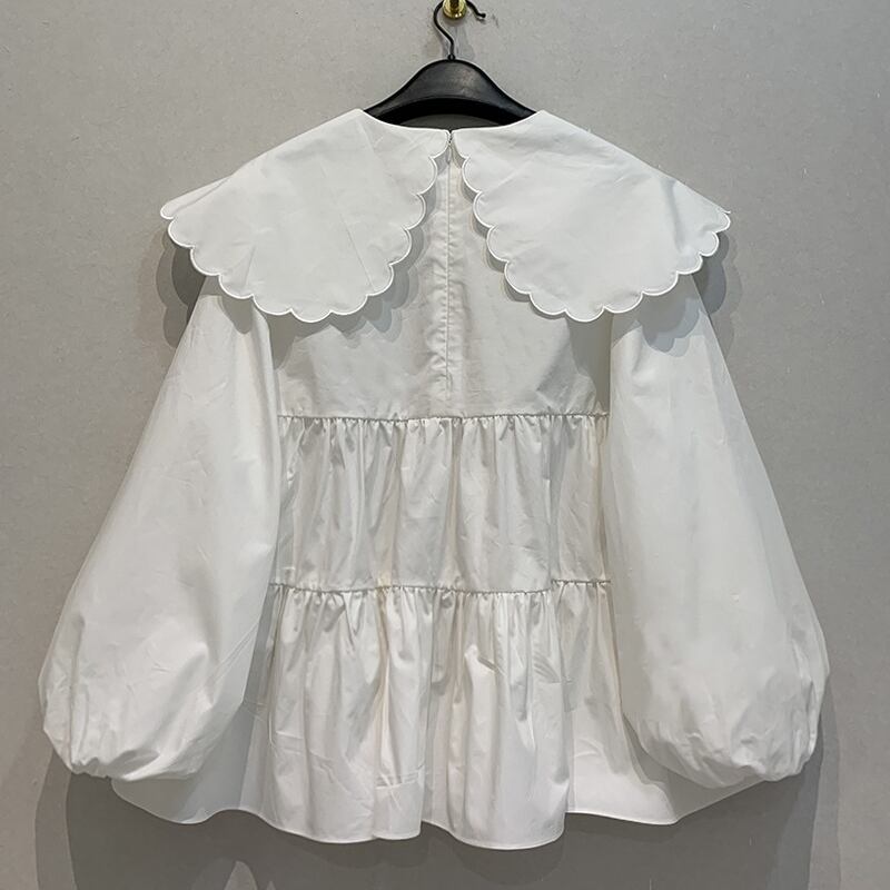 トップス シャツ 長袖 ボリューム袖 襟付き ビックカラー プルオーバー ミディアム丈 かわいい 可愛い 大人可愛い きれいめ シンプル 上品 レトロ おしゃれ かっこいい カジュアル こなれ感 個性的 主役級 存在感 抜け感 春 夏 ベーシック ナチュラル フェミニン ガーリー 無地 女性用 レディース ママ OL 通勤 オフィス 学生 通学 デート お出かけ お泊まり 女子会 旅行 休日 カフェ ショッピング コンパ イベント 普段使い デイリー 着回し 重ね着 S M L トレンド モテ ゆったり