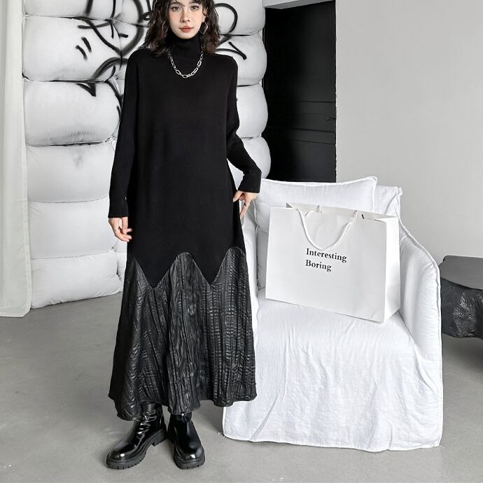 ワンピース ロングワンピース 長袖 タートルネック 切り替えデザイン 異素材ミックス フレアスカート 可愛い かわいい 大人可愛い きれいめ シンプル 上品 おしゃれ レトロ かっこいい カジュアル こなれ感 個性的 主役級 存在感 抜け感 秋 冬 ベーシック ナチュラル エレガント 無地 女性用 レディース ママ OL 通勤 オフィス 学生 通学 デート お出かけ お泊まり 女子会 旅行 休日 カフェ ショッピング コンパ 普段使い デイリー イベント 着回し 重ね着 脚長 ワンサイズ トレンド モテ