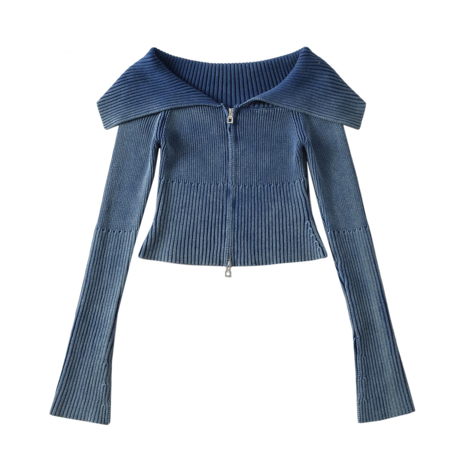 トップス ニットソー 長袖 ビックカラー 襟付き 前開き ダブルジップ ショート丈 タイト ニット かわいい 可愛い 大人可愛い きれいめ シンプル 上品 レトロ おしゃれ かっこいい カジュアル こなれ感 個性的 主役級 存在感 抜け感 秋 冬 ベーシック ナチュラル キュート フェミニン 無地 女性用 レディース ママ OL 通勤 オフィス 学生 通学 デート お出かけ お泊まり 女子会 旅行 休日 カフェ ショッピング コンパ イベント 普段使い デイリー 着回し 重ね着 S M トレンド モテ
