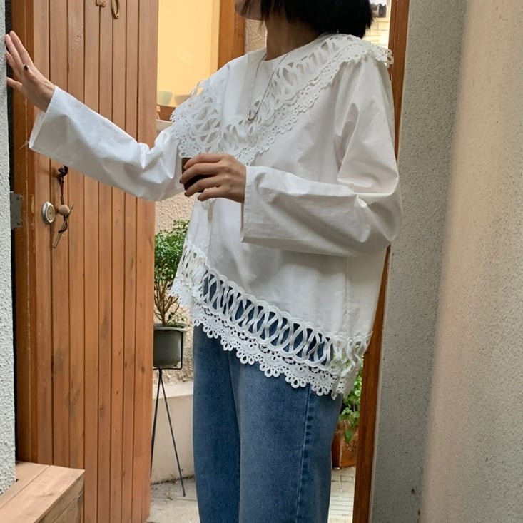 トップス シャツ 長袖 クルーネック スカーフ一体 プルオーバー ミディアム丈 アシンメトリー 刺繡 透かし編み かわいい 可愛い 大人可愛い きれいめ シンプル 上品 レトロ おしゃれ かっこいい カジュアル こなれ感 個性的 主役級 存在感 抜け感 春 秋 ベーシック ナチュラル エレガント 無地 女性用 レディース ママ OL 通勤 オフィス 学生 通学 デート お出かけ お泊まり 女子会 旅行 休日 カフェ ショッピング コンパ イベント 普段使い デイリー 着回し 重ね着 S M L トレンド