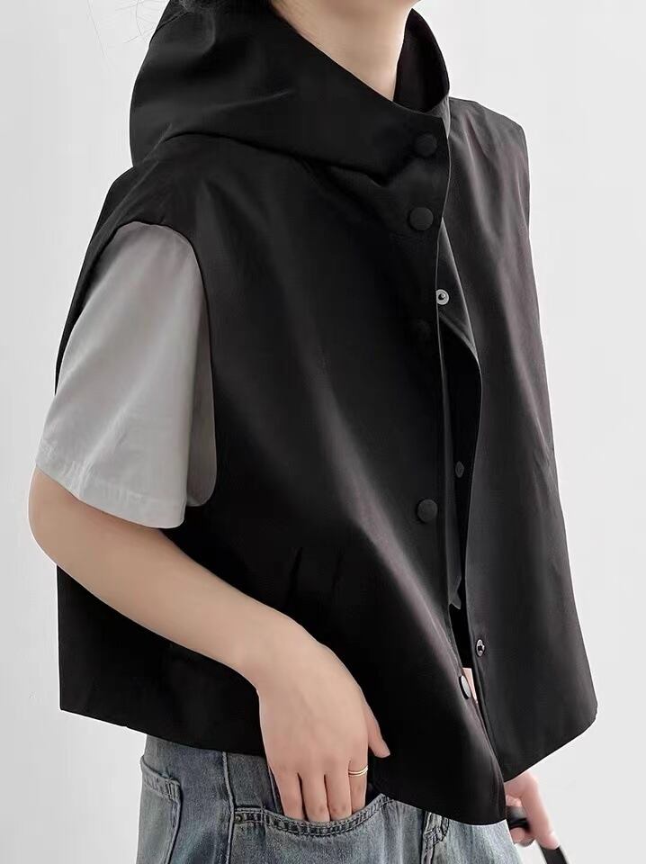 トップス ベスト ノースリーブ フード付き 前開き ボタン ショート丈 かわいい 可愛い 大人可愛い きれいめ シンプル 上品 レトロ おしゃれ かっこいい カジュアル こなれ感 個性的 主役級 存在感 ラフ ルーズ 抜け感 春 夏 ベーシック ナチュラル クール メンズライク 無地 女性用 レディース ママ OL 通勤 オフィス 学生 通学 デート お出かけ お泊まり 女子会 旅行 休日 アウトドア カフェ ショッピング コンパ 普段使い デイリー 着回し M L XL 2XL トレンド モテ | orinoa