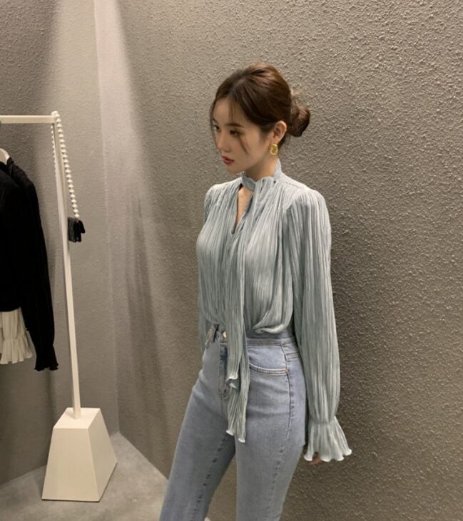 レディース トップス シャツ ブラウス 長袖 トランペットスリーブ Vネック 襟なし フレア フェミニン シースルー 薄手 きれいめ シンプル 上品 おしゃれ かっこいい こなれ感 ラフ 個性的 クール モード系 エレガント モダン 主役級 存在感 都会的 ベーシック 無地 春 夏 デート お出かけ ショッピング カフェ モノトーン 普段使い 着回し モテ 清楚 トレンド 流行 インスタ映え 定番 スタイルアップ フリーサイズ ワンサイズ ブラック アプリコット グレーブルー ベーシックカラー 大人カラー | orinoa