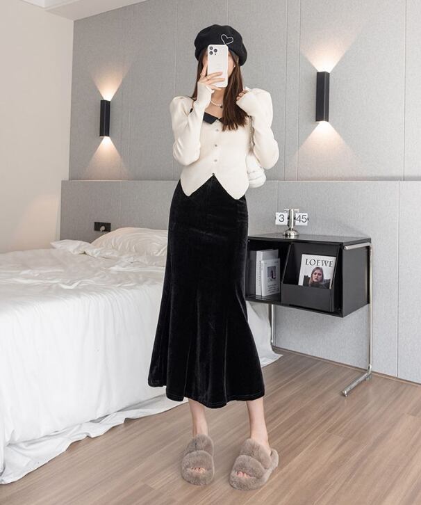 上品な艶めきを放つベルベット素材のマーメイドスカート。