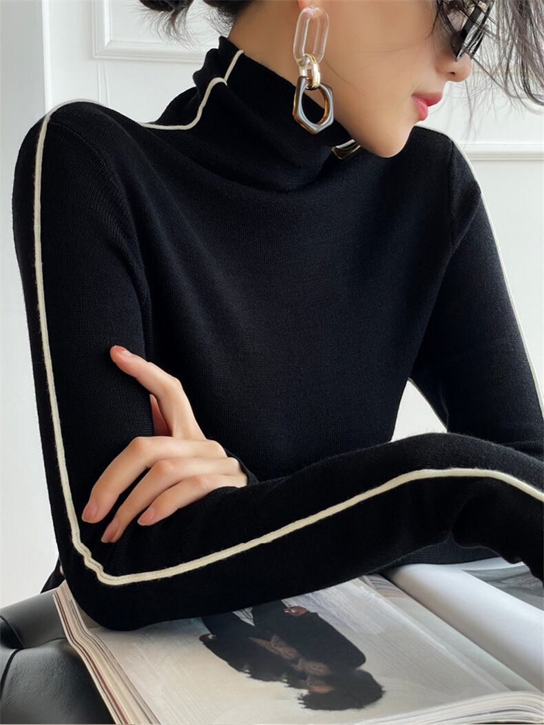 レディース トップス シャツ ニット セーター レギュラー丈 レギュラースリーブ タートルネック タイト スリム 伸縮性 スパンデックス シンプル 上品 おしゃれ レトロ 個性的 エレガント 存在感 無地 サイドライン 秋 冬 S M L 白 黒 茶色 | orinoa