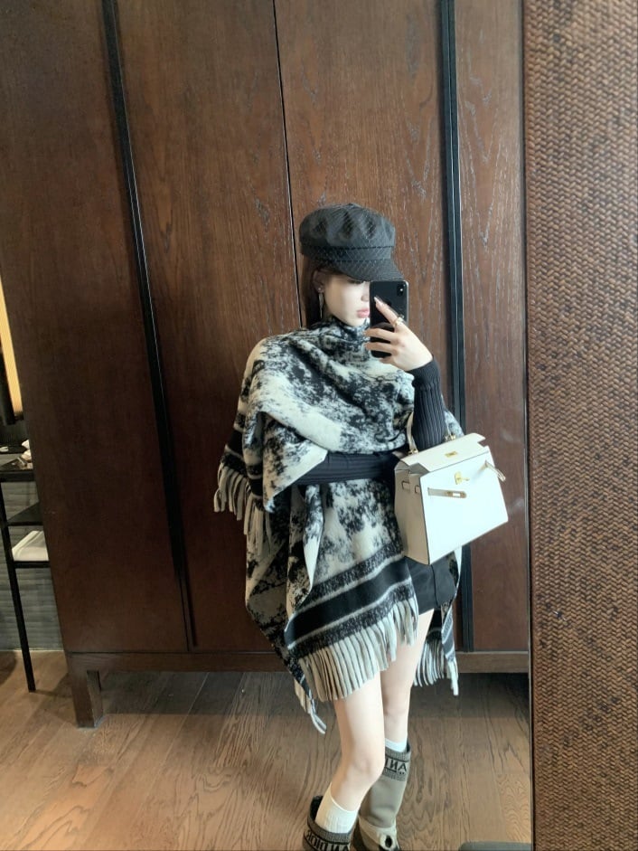 暖かく、スタイリッシュに過ごせるレディース着る毛布ショール。ウール素材で作られたこのアイテムは、シンプルでありながらもレトロな存在感を演出します。ロングワイドなドレープデザインは、体を優しく包み込み、カジュアルなシーンからビジネスシーンまで幅広く活躍します。春秋冬の季節に合わせて、オフィスや通勤、お出かけ、女子会、バカンス、カフェでのひと時にもぴったりです。モノトーンな白×黒の配色はどんなスタイルにも合わせやすく、大人の女性にふさわしい洗練された印象を与えます。