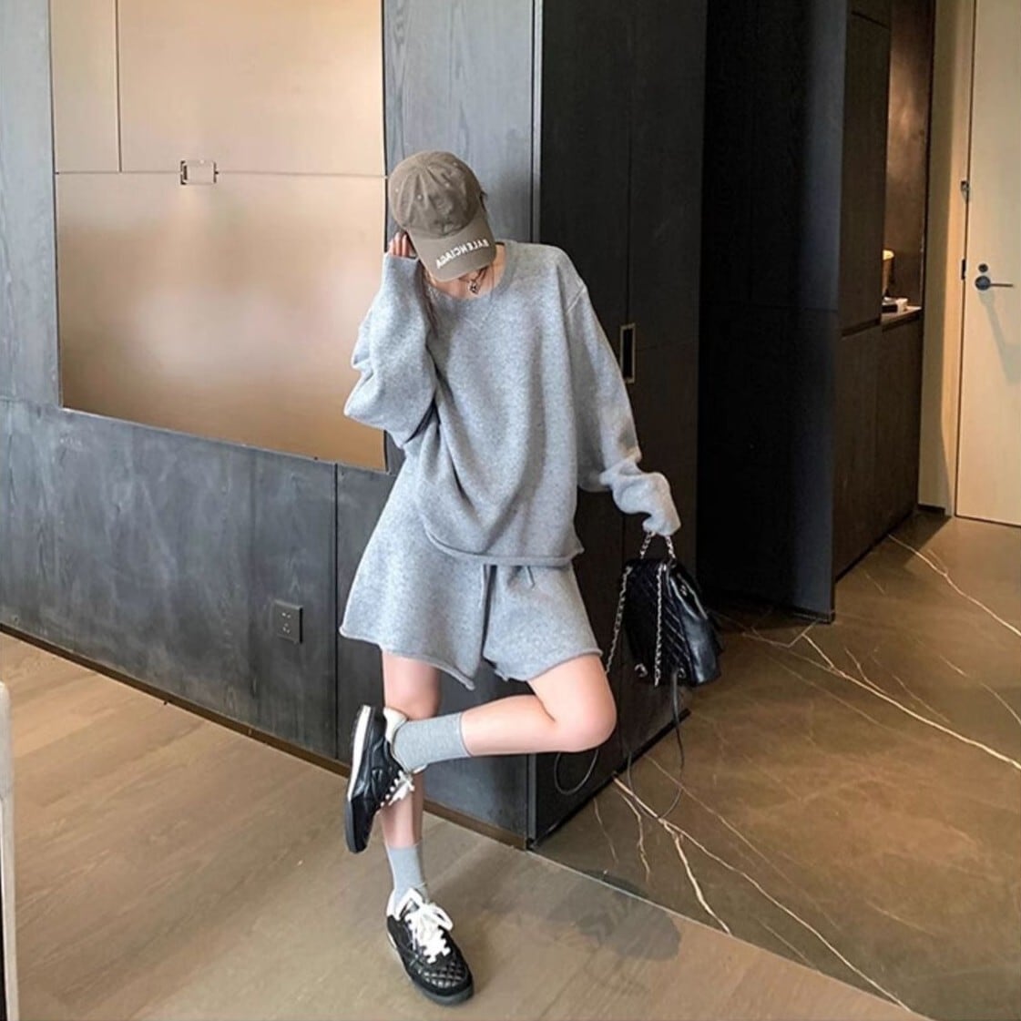 レディース トップス パンツ スウェット ショートパンツ 長袖 ラウンドネック ウエストゴム 大人可愛い きれいめ カジュアル おしゃれ かっこいい ガーリー クール ナチュラル 無地 秋 冬 通勤 お出かけ お泊まり イベント 旅行 公園 休日 韓国 コーデ 楽ちん プレゼント 普段使い 着回し 清楚 インスタ映え ゆったり フリーサイズ ワンサイズ ブラック グレー オフホワイト | orinoa