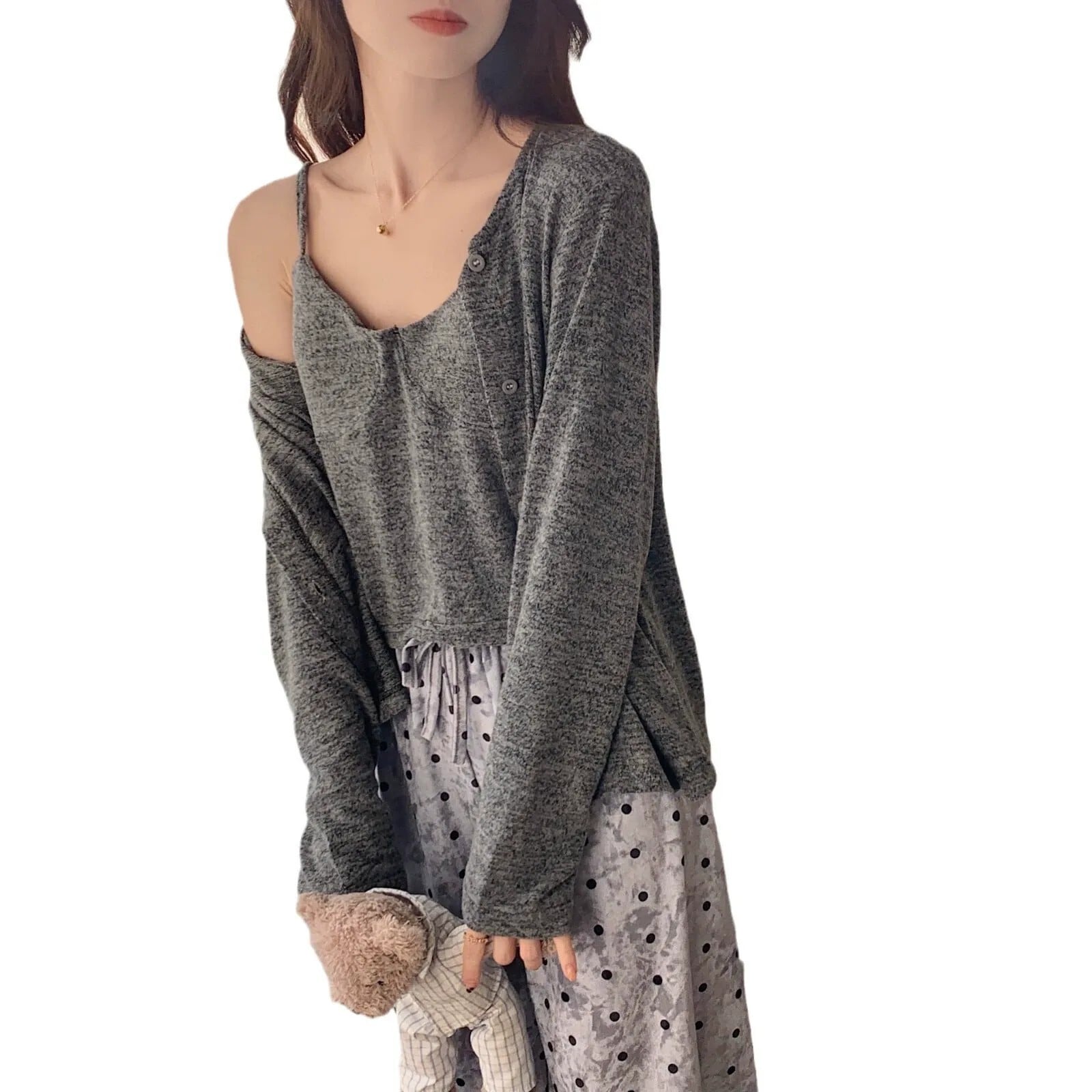 3点セット レディース トップス ボトムス パジャマ キャミソール ノースリーブ 長袖 Vネック ボタン 大人可愛い きれいめ おしゃれ かっこいい ガーリー クール セクシー 無地 春 秋 お泊まり 旅行 女子会 休日 ホテル 韓国 コーデ 楽ちん プレゼント 着回し モテ インスタ映え M L XL 2XL 大きいサイズ グレー ピンク | orinoa