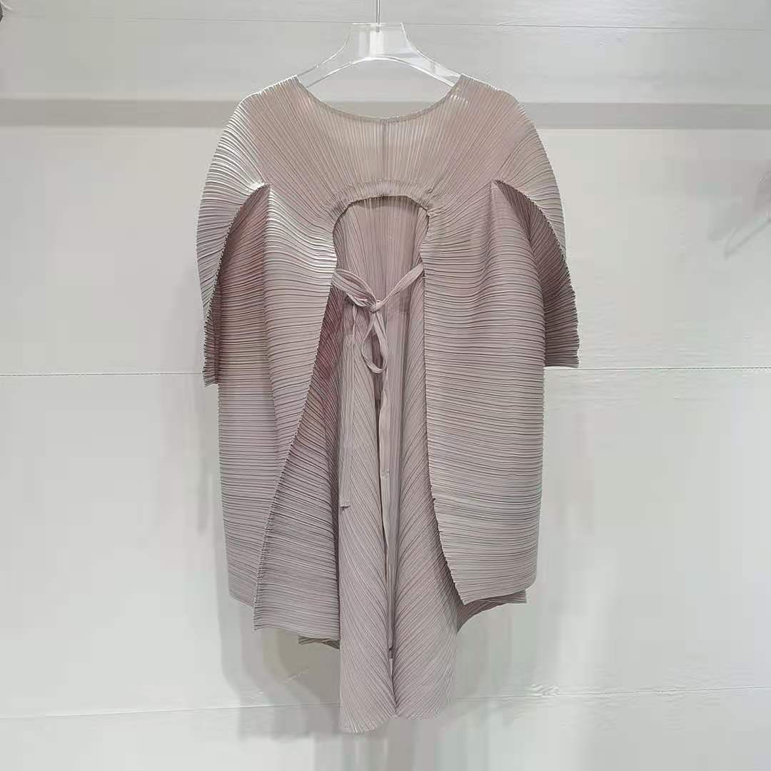 ラウンドネックとバックリボンがあしらわれたフルオーバーは、女性らしいフェミニンさを引き立てます。