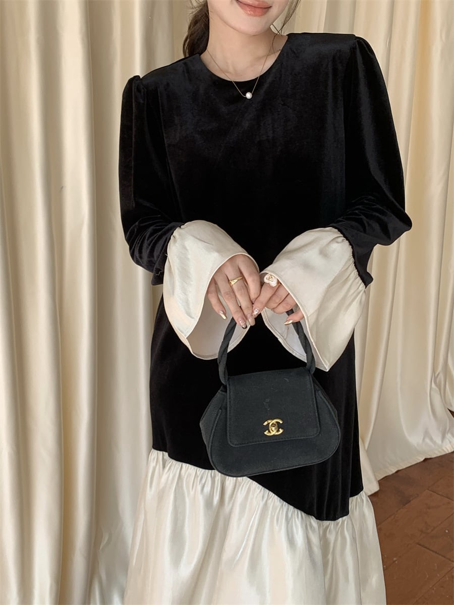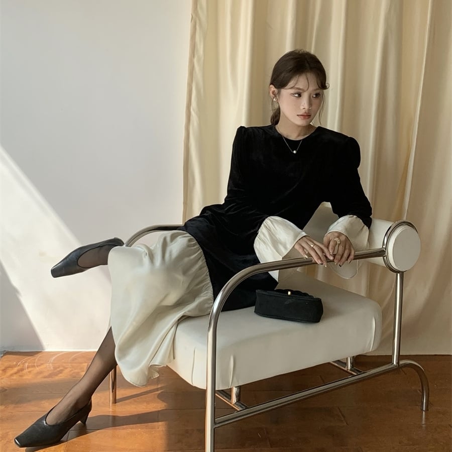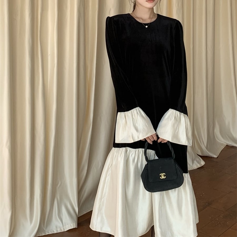 ワンピース ロングワンピース 長袖 ラウンドネック ベルスリーブ 切り替えデザイン 異素材ミックス 可愛い かわいい 大人可愛い きれいめ シンプル 上品 おしゃれ レトロ かっこいい カジュアル こなれ感 個性的 主役級 存在感 抜け感 秋 冬 ベーシック ナチュラル エレガント 無地 女性用 レディース ママ OL 通勤 オフィス 学生 通学 デート お出かけ お泊まり 女子会 旅行 休日 カフェ ショッピング コンパ 普段使い デイリー イベント 着回し 重ね着 脚長 ワンサイズ トレンド | orinoa