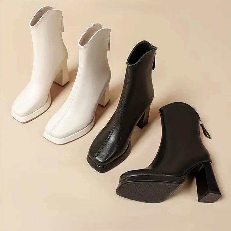 レディース ブーツ ショートブーツ 太ヒール レザー 大人可愛い きれいめ おしゃれ かっこいい レトロ ガーリー クール 無地 春 秋 冬 通勤 デート お出かけ イベント 旅行 海外 ホテル レストラン 公園 休日 デイリー 普段使い お揃い 韓国 コーデ スタイル モテ 22.5cm 23.0cm 23.5cm 24.0cm 24.5cm 25.0cm 大きい ブラック アプリコット | orinoa
