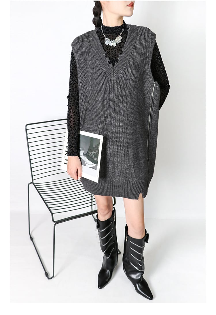 レディース トップス ベスト 丈長 袖なし ノースリーブ Vネック ワイド オーバーサイズ スリット サイドジップ ダメージ かわいい 大人可愛い カジュアル おしゃれ こなれ感 クール ベーシック ナチュラル 無地 秋 冬 ママ 通勤 学生 学校 通学 デート お出かけ 旅行 レストラン 女子会 休日 ホテル ショッピング カフェ モノトーン 体型カバー 普段使い 着回し ゆったり ゆる フリーサイズ ブラック グレー 大人カラー 秋カラー | orinoa