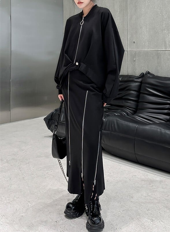 ファスナー付きの前開き仕様で着脱もスムーズ。シンプルな無地デザインだから、カジュアルにもきれいめにも合わせやすく、通勤や通学、お出かけやライブなど幅広いシーンで活躍します。ブラックのモノトーンカラーが、どんなコーデにも自然になじむ一枚です。