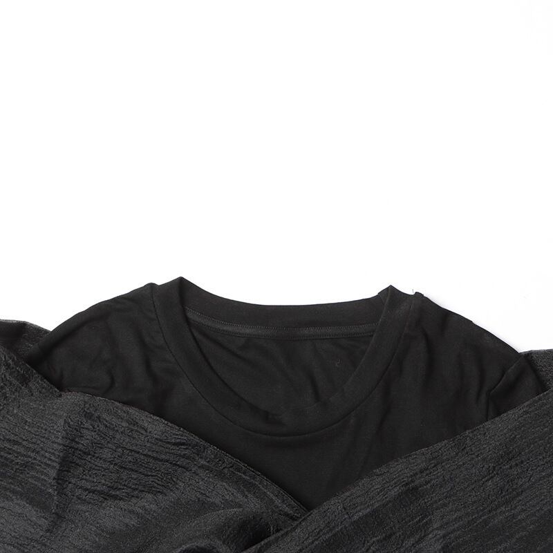 重ね着風 フロントクロス レディース トップス カットソー 長袖 クルーネック 襟なし タイト スリム 細身 大人可愛い きれいめ シンプル カジュアル 上品 おしゃれ こなれ感 個性的 主役級 存在感 抜け感 ナチュラル 無地 春 秋 ママ 学生 学校 通学 デート お出かけ 旅行 レストラン 女子会 休日 ホテル ショッピング カフェ 合コン モノトーン 普段使い 着回し インスタ映え S M L 黑 ブラック ベーシックカラー 大人カラー