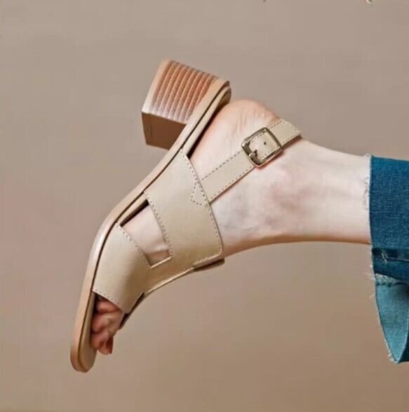 上品さと歩きやすさを両立した、大人の女性にぴったりのバックストラップサンダル。安定感のある太めの5cmヒールとスクエアトゥデザインが、足元をすっきり美しく見せてくれます。シンプルながらも洗練されたシルエットで、どんなコーデにも自然にマッチ。