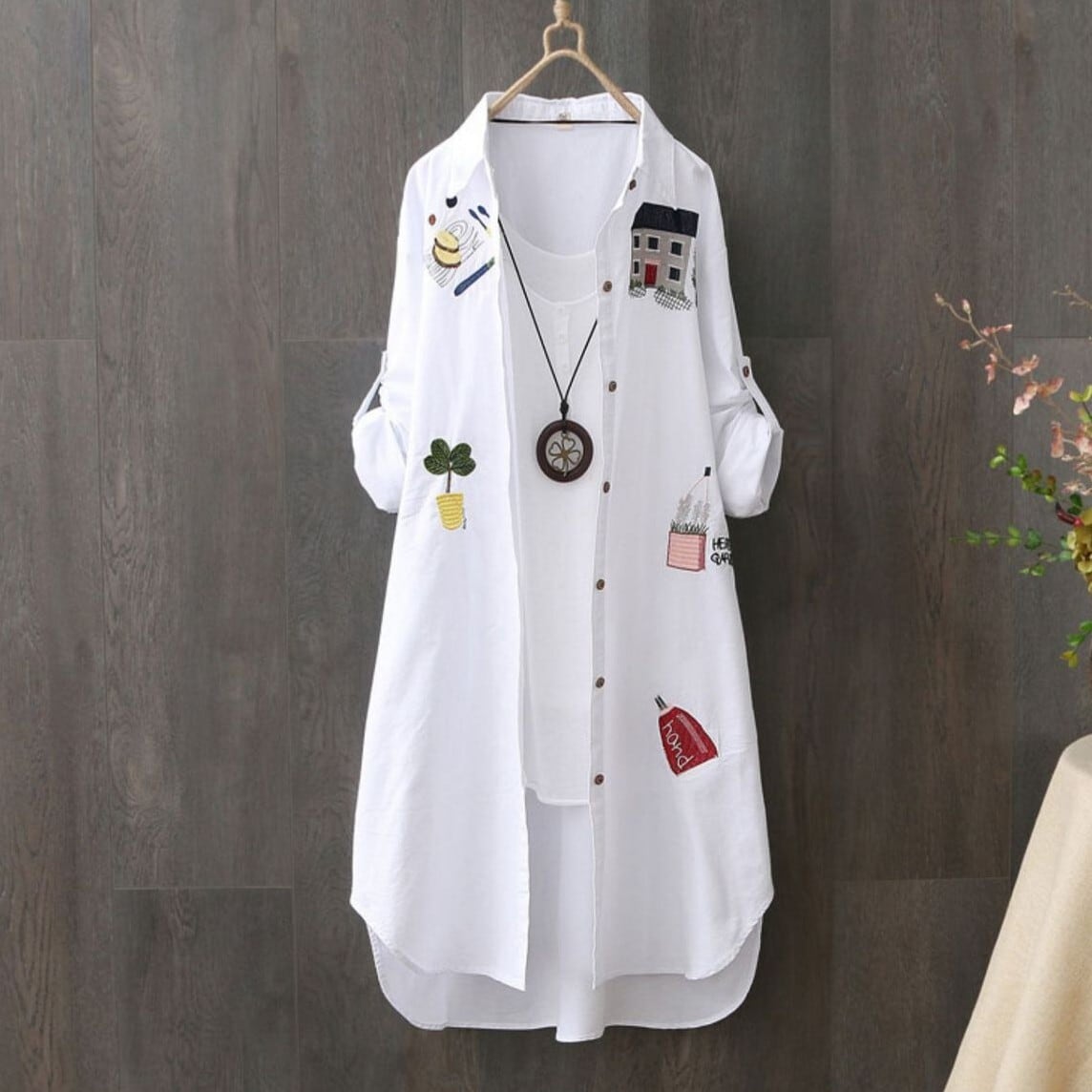 レディース トップス シャツ 羽織 前開き ロング 長袖 七分袖 襟付き 角襟 Iライン 刺繍 かわいい 大人可愛い シンプル カジュアル おしゃれ ルーズ キュート ベーシック ナチュラル 春 夏 ママ 通勤 学生 学校 通学 デート お出かけ リゾート 旅行 公園 女子会 休日 ショッピング お花見 カフェ 体型カバー 普段使い 着回し ロールアップ M L XL 2XL 3XL 大きいサイズ ゆったり ゆる ホワイト ブルー ベーシックカラー 春カラー