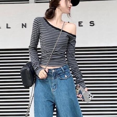 トップス カットソー 長袖 ワンショルダー プルオーバー ミディアム丈 可愛い かわいい 大人可愛い きれいめ シンプル 上品 おしゃれ レトロ かっこいい カジュアル こなれ感 個性的 主役級 存在感 抜け感 春 秋 ベーシック ナチュラル メンズライクボーダー柄 女性用 レディース ママ OL 通勤 オフィス 学生 通学 デート お出かけ お泊まり 女子会 旅行 休日 アウトドア カフェ ショッピング コンパ 普段使い デイリー イベント 着回し 重ね着 S M L XL 定番アイテム モテ