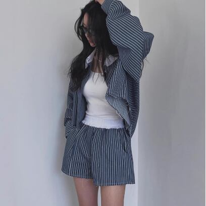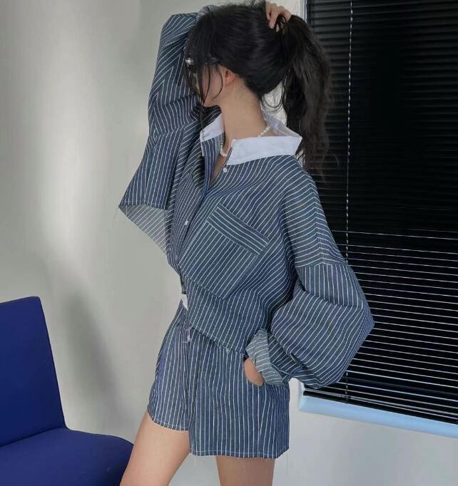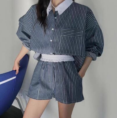 レディース トップス パンツ ボトムス セットアップ 2点セット 上下セット デニム 長袖 襟付き ワイド ストリート ウエストゴム デニム ブルーデニム カジュアル おしゃれ かっこいい こなれ感 ラフ 個性的 クール モダン 主役級 存在感 都会的 ベーシック ナチュラル ストライプ 春 秋 デート お出かけ 女子会 休日 ショッピング カフェ コーデ 楽ちん 美脚 脚長 普段使い 着回し モテ 清楚 トレンド 流行 インスタ映え 定番 スタイルアップ フリーサイズ ワンサイズ ブルー