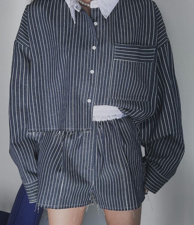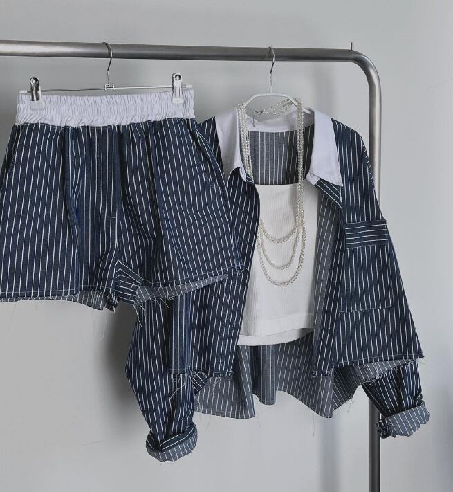 トレンド感あふれるデニム素材の上下セットアップ。
