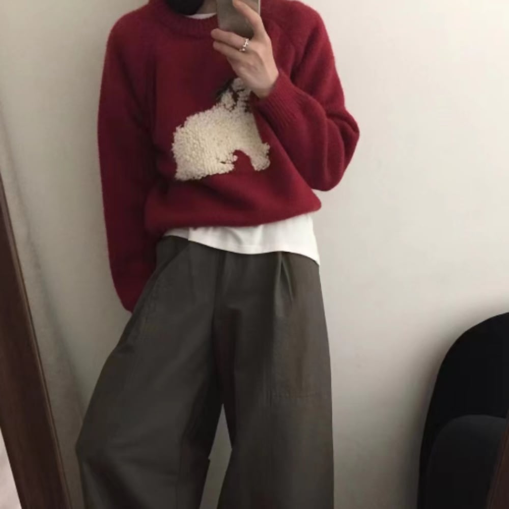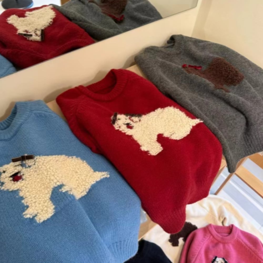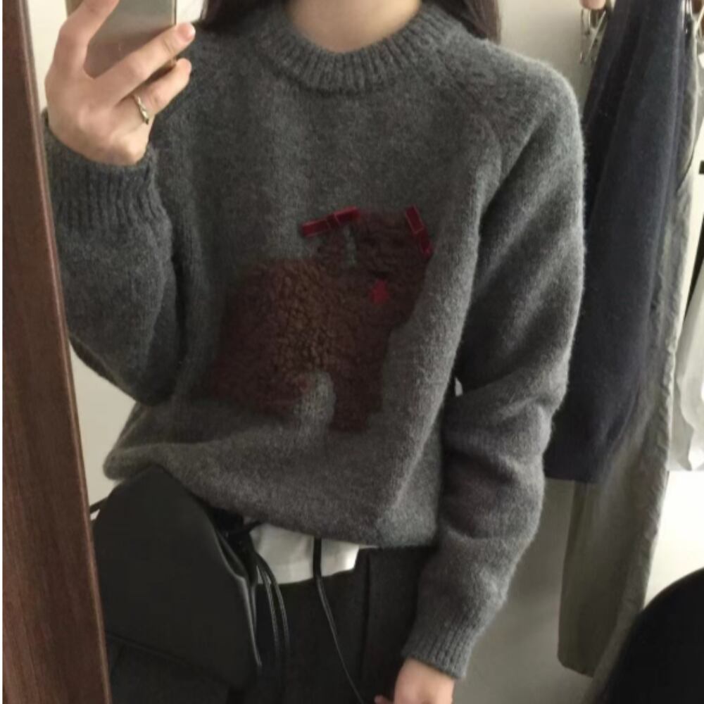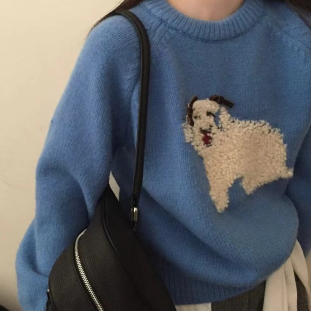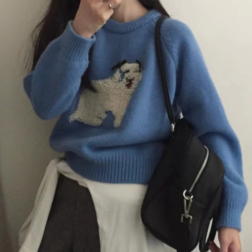 トップス セーター 長袖 Uネック プルオーバー ミディアム丈 可愛い かわいい 大人可愛い きれいめ シンプル 上品 おしゃれ レトロ かっこいい カジュアル ラフ ルーズ こなれ感 個性的 主役級 存在感 抜け感 秋 冬 ベーシック ナチュラル クール 犬柄 女性用 レディース OL 通勤 オフィス 学生 通学 デート お出かけ お泊まり 女子会 旅行 休日 アウトドア カフェ ショッピング コンパ 普段使い デイリー イベント 着回し 重ね着 トレンド モテ フリーサイズ