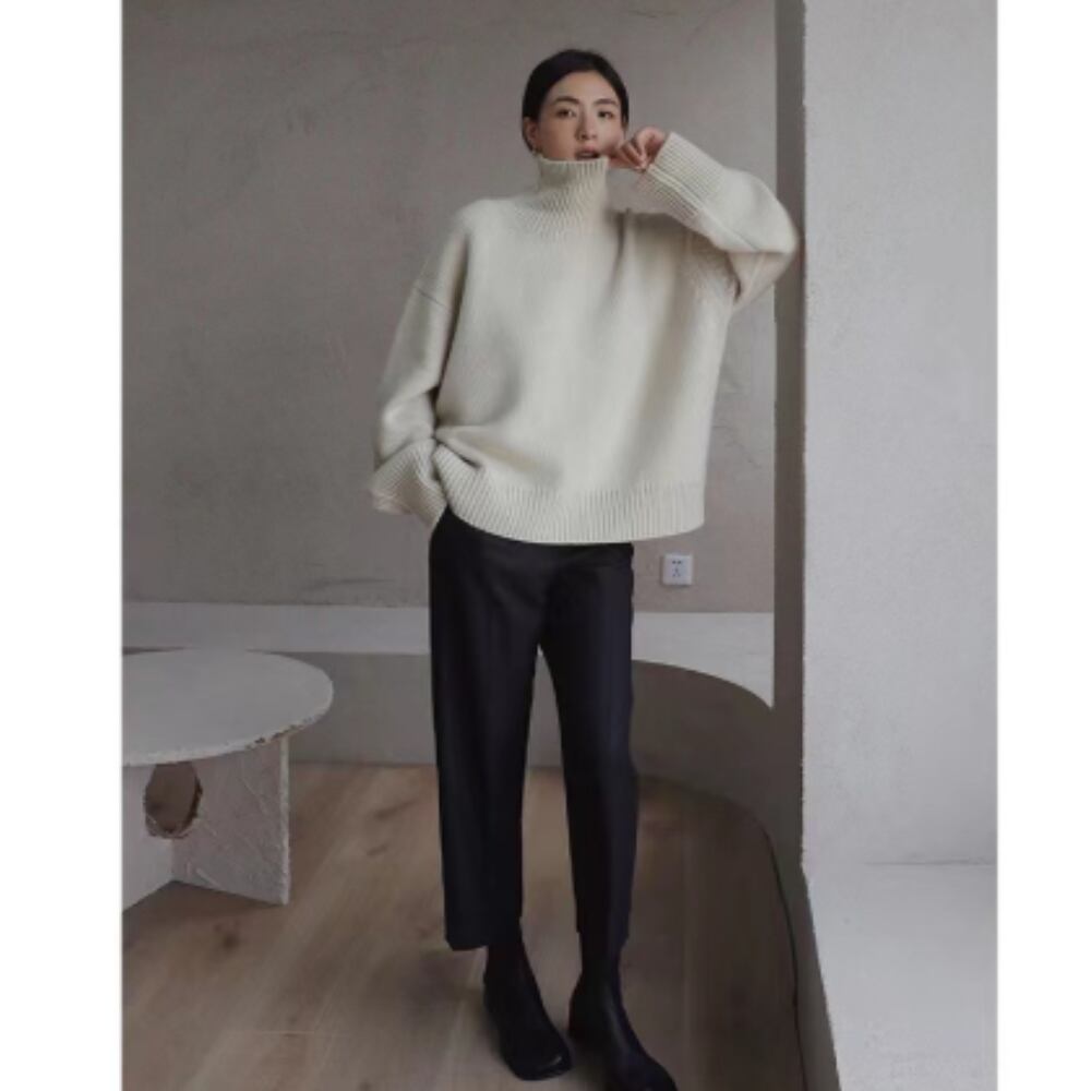 ・レトロなタートルネックのデザインが、首元を温かく包み込むだけでなく、ルーズなシルエットがリラックスしたこなれ感を演出。大人可愛いスタイルが実現します。