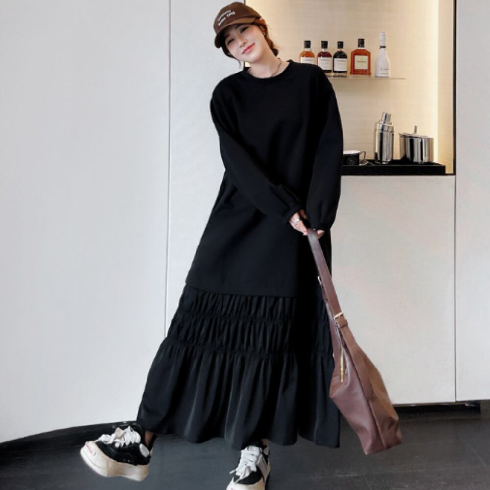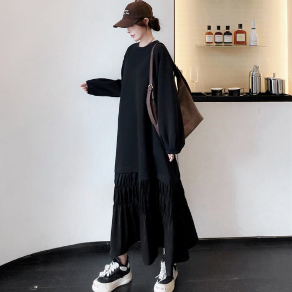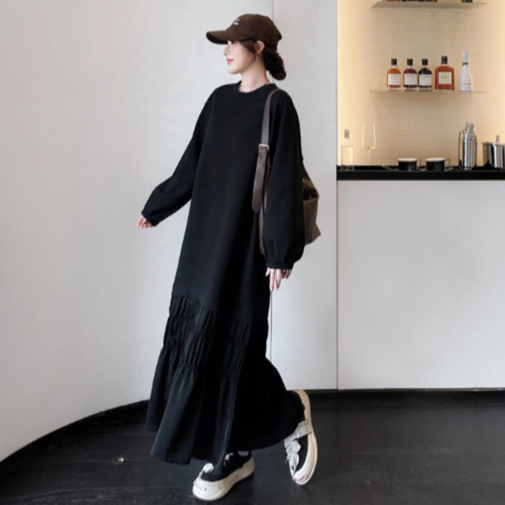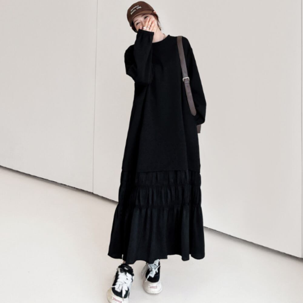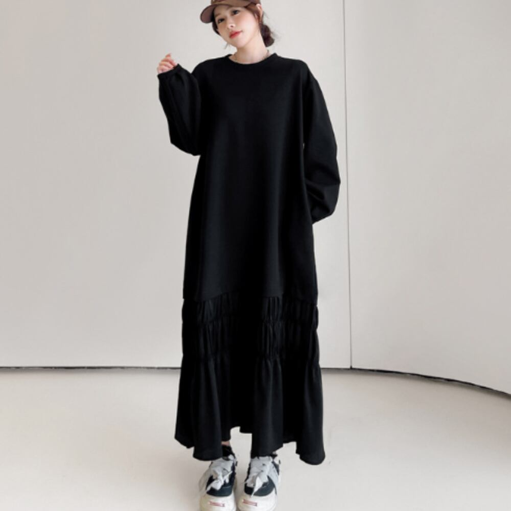 ワンピース ロングワンピース 長袖 可愛い かわいい 大人可愛い きれいめ シンプル 上品 おしゃれ レトロ かっこいい カジュアル こなれ感 個性的 主役級 存在感 抜け感 春 秋 ベーシック ナチュラル エレガント 無地 女性用 レディース ママ マタニティ OL 通勤 学生 通学 デート お出かけ お泊まり 女子会 旅行 休日 カフェ ショッピング コンパ 普段使い デイリー イベント 着回し 重ね着 ゆったり L XL 2XL 3XL ブラック