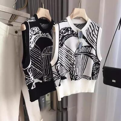 レディース トップス ベスト ニットベスト ノースリーブ クルーネック ラウンドネック 柄編み ジャカード モノトーン 幾何学柄 ショート丈 重ね着 ウエストリブ 伸縮性 柔らか素材 春 秋 冬 通勤 通学 デイリー カジュアル シンプル モード モダン 個性派 大人可愛い 20代 30代 40代 学生 女性 社会人 デート お出かけ 旅行 休日 オフィス きれいめ ストリート お揃い 双子 韓国 楽ちん 暖かい 防寒 体型カバー プチプラ 普段使い 着回し 清楚 M L ホワイト ブラック