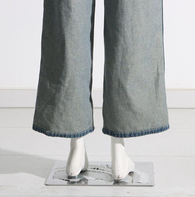 トレンドのワイドシルエットが魅力のデニムパンツ。