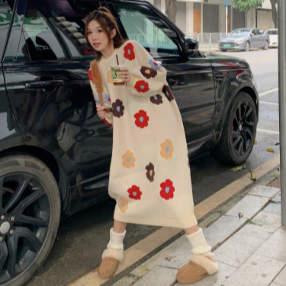 このニットワンピースは、ふんわりとしたシルエットが特徴で、リラックス感のある着心地が魅力。カジュアルなデイリーコーデはもちろん、通勤やデート、お出かけの際にもぴったりです。そして、花柄のディテールが清楚な印象をプラスし、女性らしさを引き立てます。休日のカフェやショッピング、女子会などでも主役級の存在感を発揮。