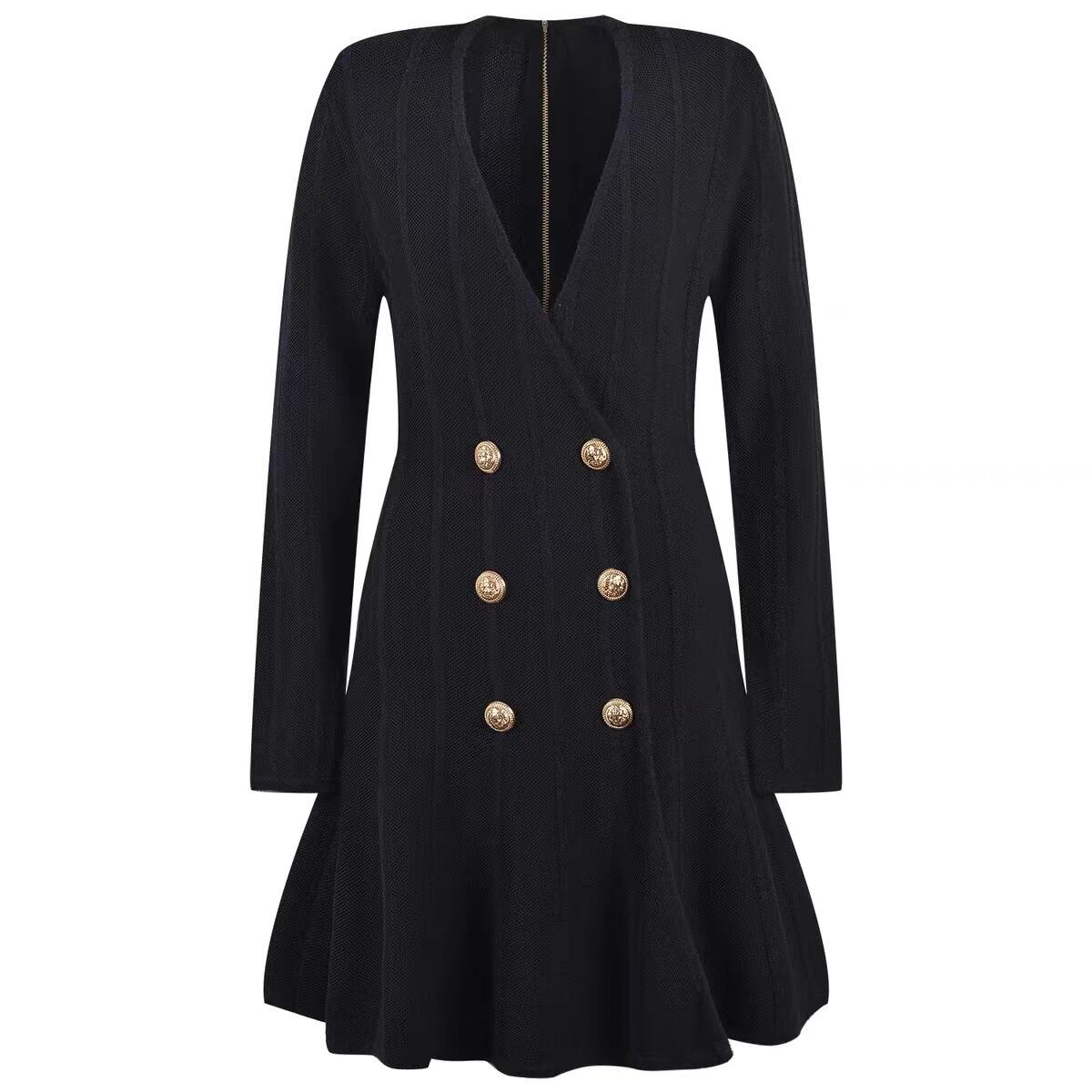 ワンピース ミディアム丈ワンピース スーツ 長袖 深Vネック ダブルボタン バックファスナー 可愛い かわいい 大人可愛い きれいめ シンプル 上品 おしゃれ レトロ かっこいい カジュアル こなれ感 個性的 主役級 存在感 抜け感 秋 冬 ベーシック ナチュラル エレガント フォーマル 無地 女性用 レディース ママ OL 通勤 オフィス デート お出かけ お泊まり 女子会 旅行 リゾート 休日 カフェ ショッピング コンパ 普段使い デイリー イベント 着回し 重ね着 脚長 S M L モテ トレンド