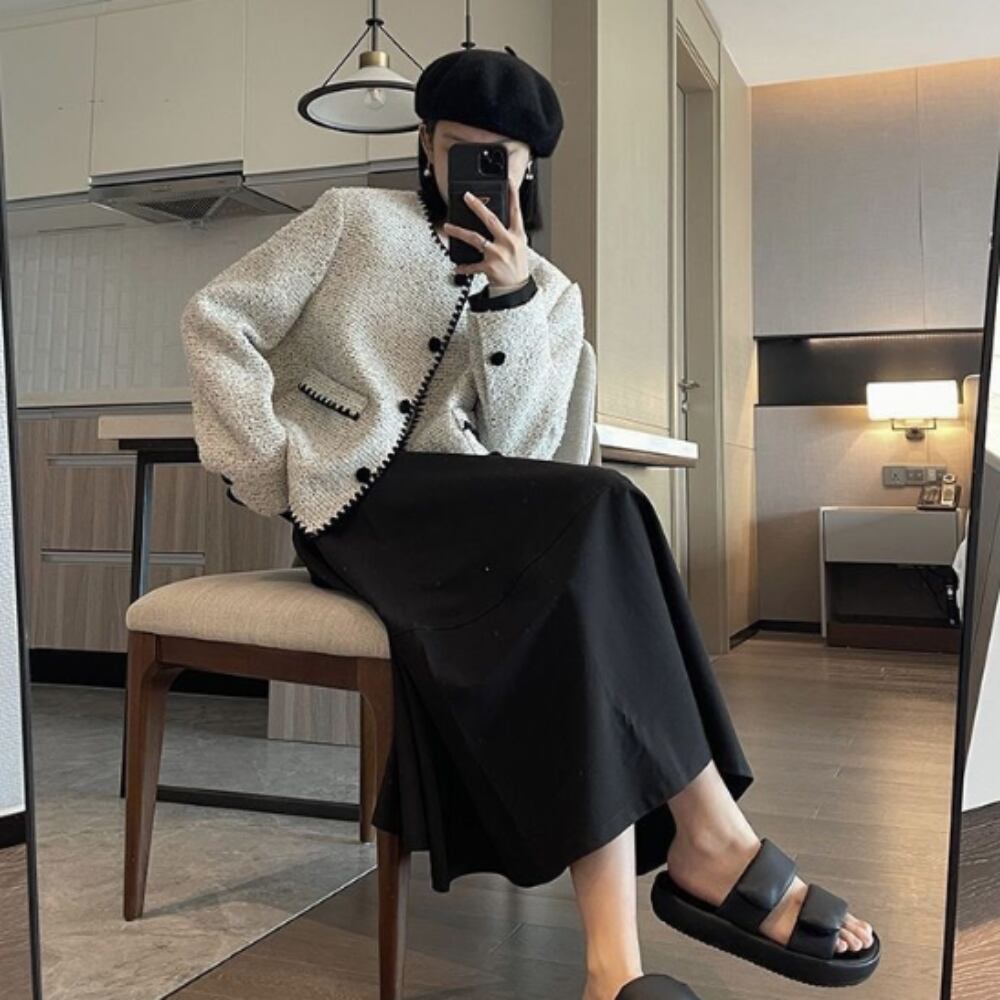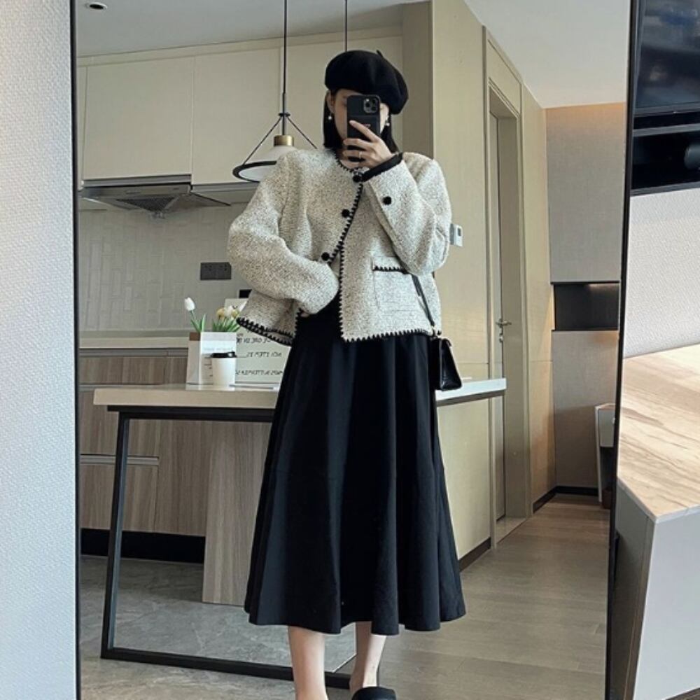 スリムなシルエットは体型を美しく見せ、ぴったりとしたラインが上品さを引き立てます。ポケット付きなので実用性も抜群です。ラウンドネックデザインは顔周りを優しく見せ、どんなスタイルとも相性が良く、クラシカルかつ個性的な印象を与えます。特に30代・40代の女性におすすめのアイテムです。