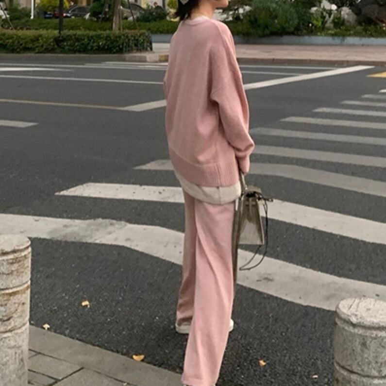2点セット セットアップ セーター 長袖 クルーネック 重ね着風 プルオーバー ミディアム丈 ロングパンツ ウエストゴム 可愛い かわいい 大人可愛い きれいめ シンプル 上品 おしゃれ レトロ かっこいい カジュアル こなれ感 個性的 主役級 存在感 抜け感 秋 冬 ベーシック ナチュラル メンズライク 女性用 レディース OL 通勤 学生 通学 デート お出かけ お泊まり 女子会 旅行 休日 カフェ ショッピング 普段使い デイリー イベント 着回し 重ね着 脚長 ワンサイズ 定番アイテム モテ
