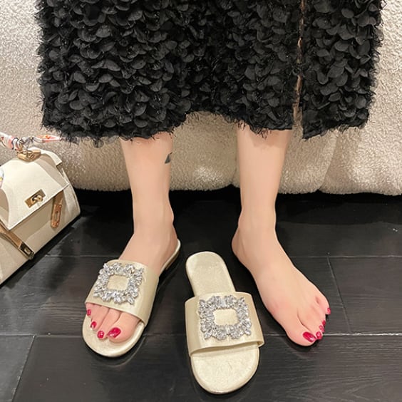 レディース スリッポン サンダル ぺたんこサンダル 3cm ぺたんこ スクエアトゥ キラキラ ビジュー メタリック ビスコースシューズ 厚手 人工PU シンプル おしゃれ かっこいい エレガント 存在感 無地 夏 OL 通勤 デート お出かけ リゾート 旅行 公園 休日 普段使い 22.5cm 23.0cm 23.5cm 24.0cm 24.5cm 25.0cm ブラック ホワイト レッド グリーン