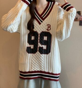 レディース トップス セーター 長袖 Vネック ワイド ポリエステル かわいい シンプル カジュアル おしゃれ かっこいい ラフ メンズライク ボーイッシュ スポーティー ルーズ キュート ナチュラル 無地 春 秋 冬 学生 デート お出かけ 女子会 休日 ショッピング お揃い 双子 普段使い 着回し モテ 定番 M L XL 2XL 3XL 4XL 白 赤