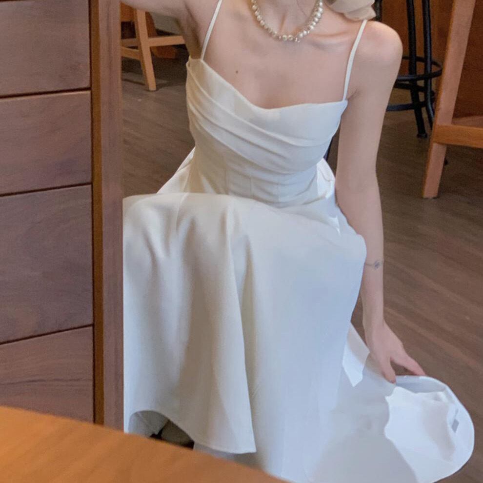 ドレス ワンピース キャミワンピース キャミドレス ウェディング パーティー 結婚式 披露宴 演奏会 発表会 ステージ 舞台 衣装 コスプレ ラウンジ ミディアム丈 ミドル丈 袖なし ノースリーブ キャミソール スクエアネック デコルテ 鎖骨 スリム 細身 セミフレア Aライン カクテル イブニング ハイウエスト ギャザー ドレープ 可愛い きれいめ シンプル 大人可愛い 上品 おしゃれ ガーリー エレガント クラシック シック クラシカル 無地 レストラン 韓国 高見え 春 夏 S M L ホワイト 白