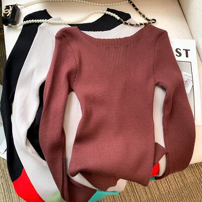 レディース トップス ニット セーター 長袖 Uネック ラウンドネック タイト スリム 細身 フェミニン ストリート リブ 伸縮性 コンサバ バイカラー 配色 リブニット かわいい 大人可愛い シンプル 上品 おしゃれ 個性的 モード系 エレガント 主役級 存在感 都会的 ラグジュアリー クラシカル アメリカン 無地 秋 冬 会議 ビジネス 通勤 デート お出かけ パーティー イベント リゾート 旅行 海 レストラン ビーチ 女子会 休日 バカンス ホテル ショッピング 発表会 コンサート ライブ コスプ