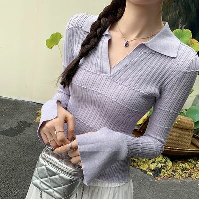 レディース トップス ニット セーター 長袖 フレアスリーブ Vネック 襟付き 角襟 タイト スリム 細身 フェミニン リブ 伸縮性 コンサバ リブニット かわいい 大人可愛い きれいめ シンプル 上品 おしゃれ こなれ感 エレガント とろみ感 抜け感 都会的 ラグジュアリー クラシカル ベーシック アメリカン 無地 ストライプ エンボス 春 秋 冬 会議 MTG ミーティング プレゼン オフィス ビジネス OL 通勤 通学 デート お出かけ パーティー イベント リゾート 旅行 海 レストラン ビーチ