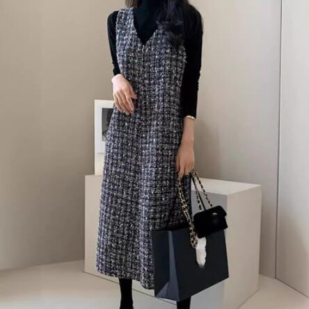 ワンピース ジャンパースカート レディース 秋 冬 タンクトップ ロングワンピース サロペットスカート ジャンスカ きれいめ 秋冬 かわいい 大人可愛い きれいめ シンプル 上品 おしゃれ デート お出かけ パーティー イベント リゾート 旅行 女子会 発表会 ブラック S M L XL