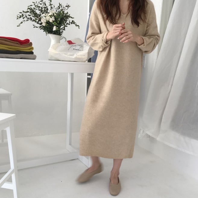 このニットワンピースは、カジュアルでありながら大人可愛いスタイルを実現する一着です。ボリューム袖とVネックのデザインが女性らしさを引き立て、ゆったりとしたシルエットが体型カバーも叶えてくれます。ロング丈のミモレデザインは、秋冬の様々なシーンに対応し、休日のお出かけやショッピングにも最適です。シンプルでありながらもこなれ感のあるスタイルは、韓国風コーディネートにもぴったりです!
