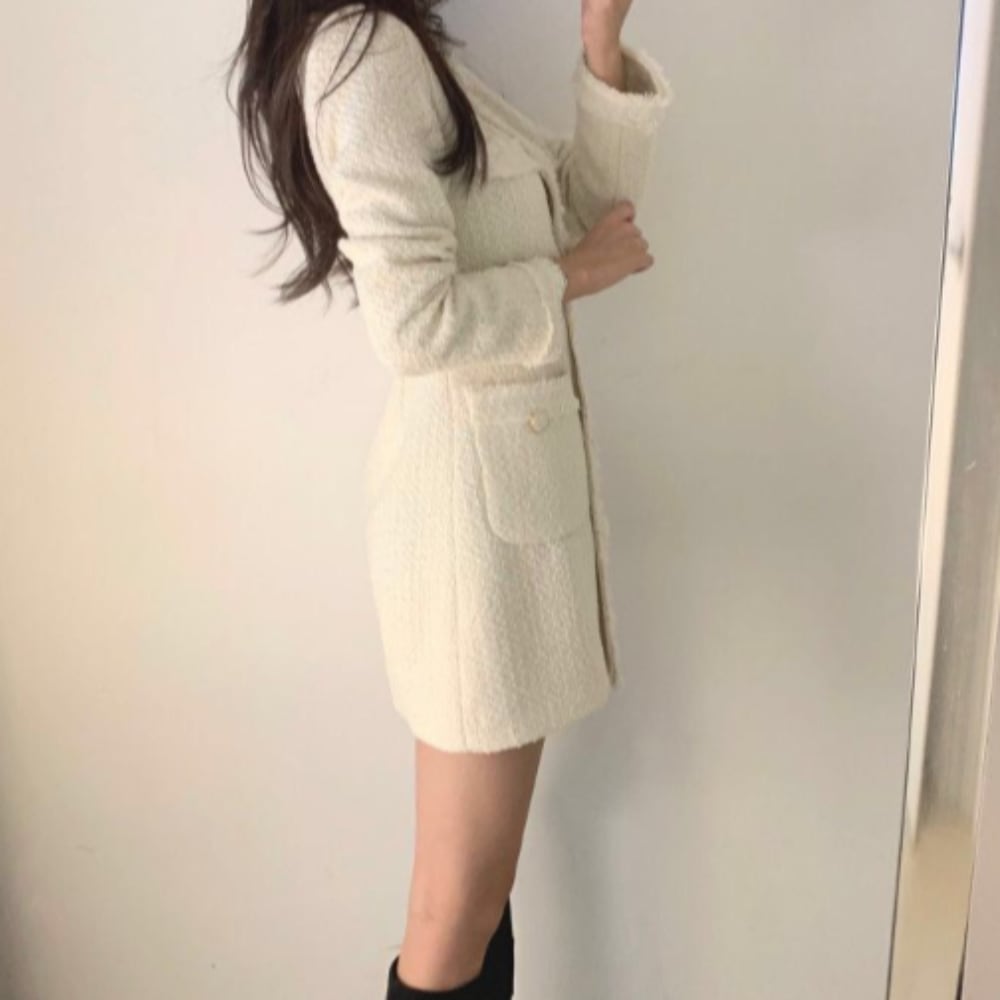 レディース ジャケット アウター ショート 長袖 ワンピース ツイード生地 大人可愛い シンプル 上品 おしゃれ レトロ 個性的 エレガント 存在感 無地 秋 冬 OL 通勤 デート お出かけ イベント リゾート 旅行 女子会 休日 バカンス ショッピング 普段使い ホワイト ブラック S M L