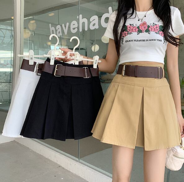 レディース スカート ショートスカート ショート フレア Aライン フェミニン タック ベルト ハイウエスト 大人可愛い おしゃれ ガーリー 無地 秋 冬 デート お出かけ 女子会 休日 カフェ 美脚 脚長 S M L XL ブラウン ブラック ホワイト アプリコット