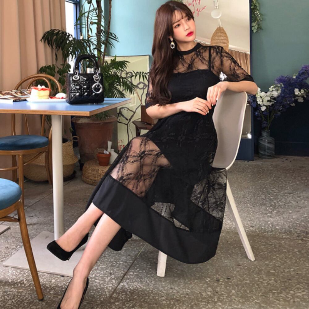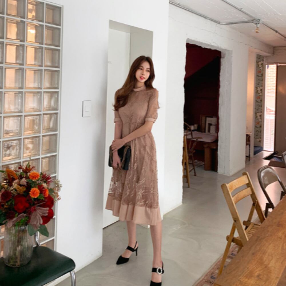 ワンピース ミモレ丈ワンピース 5分袖 レース 刺繡 透け感 ミモレ丈 可愛い かわいい 大人可愛い きれいめ シンプル 上品 おしゃれ レトロ かっこいい カジュアル こなれ感 個性的 主役級 存在感 抜け感 ベーシック ナチュラル キュート エレガント 女性用 レディース ママ OL 通勤 学生 通学 デート お出かけ お泊まり 女子会 旅行 休日 カフェ ショッピング コンパ 普段使い デイリー パーティー ディナー イベント 着回し 重ね着 S M L XL トレンド モテ ピンク ブラック