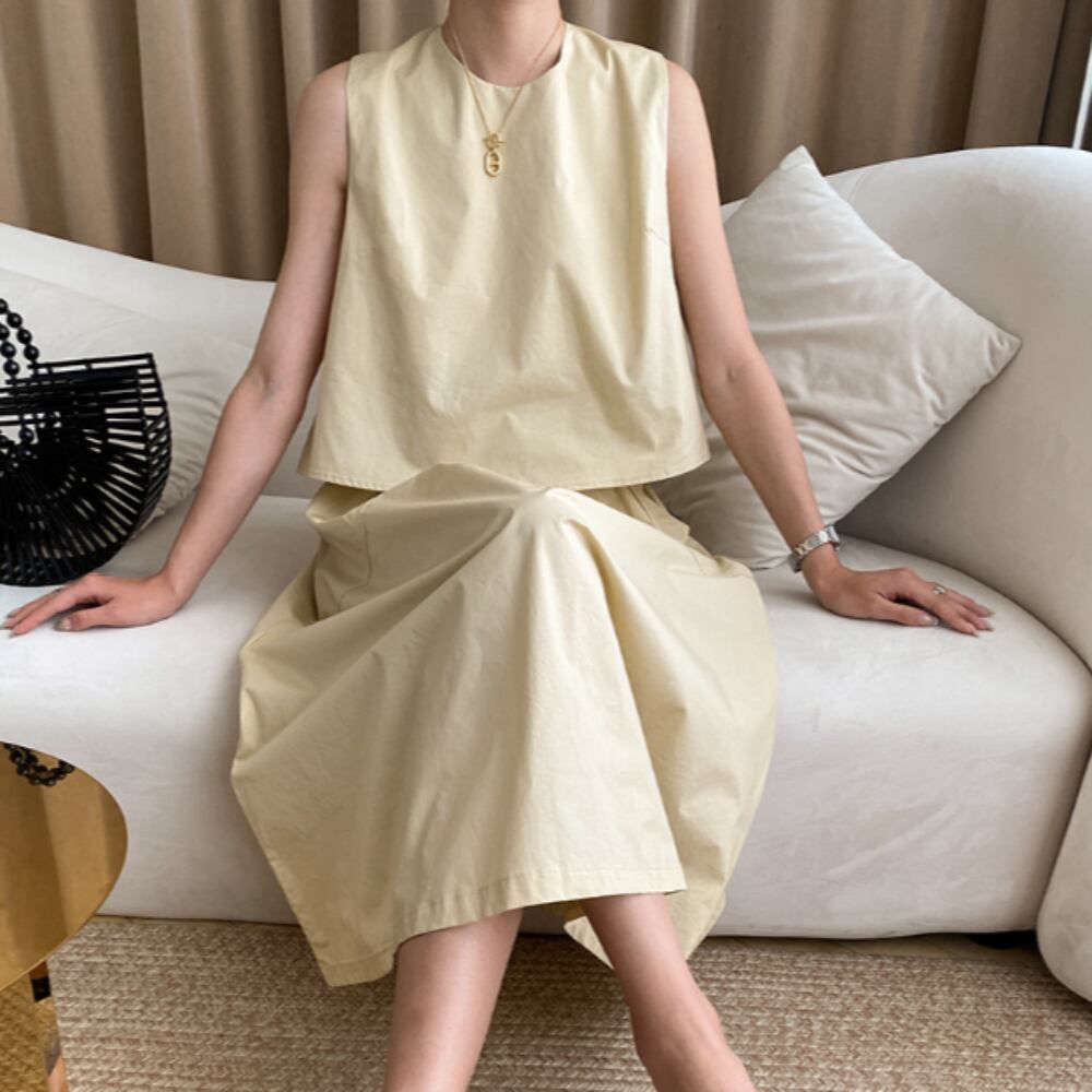 2点セット セットアップ ブラウス ノースリーブ クルーネック プルオーバー ペプラム ミモレ丈スカート フレアスカート 可愛い かわいい 大人可愛い きれいめ シンプル 上品 おしゃれ レトロ かっこいい カジュアル こなれ感 個性的 主役級 存在感 抜け感 ベーシック ナチュラル エレガント キュート 無地 女性用 レディース OL 通勤 オフィス 学生 通学 デート お出かけ お泊まり 女子会 旅行 休日 カフェ ショッピング コンパ 普段使い デイリー イベント 着回し 重ね着 脚長 S M L