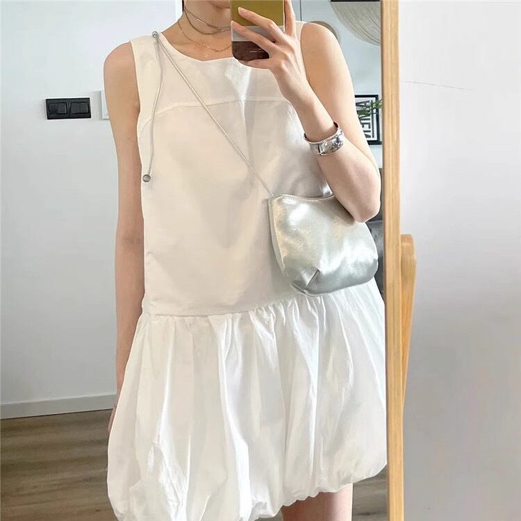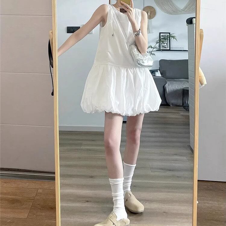 レディース スカート ワンピース プルオーバー ミニワンピ ミニスカート ミニ 袖なし ノースリーブ ラウンドネック 切り替え バルーン フェミニン ギャザー 切り替えデザイン かわいい シンプル カジュアル おしゃれ こなれ感 ラフ ガーリー ルーズ 個性的 存在感 抜け感 ラブリー キュート シック 無地 春 夏 10代 20代 30代 40代 学生 デート お出かけ リゾート 公園 女子会 休日 ショッピング 重ね着 韓国 コーデ 体型カバー 着回し S M L XL 白 ホワイト 黒 ブラック