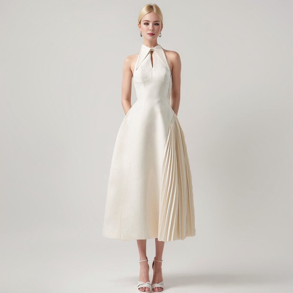 ワンピース ドレス ロングワンピース ノースリーブワンピース ノースリーブAラインドレスワンピース 襟付き ノースリーブ 袖なし フレア ハイウエスト Aライン ロング丈 ミモレ丈 無地 プリーツ レディース かわいい 大人可愛い おしゃれ ガーリー エレガント キュート きれいめ 上品 お出かけ 休日 デート 女子会 イベント 体型カバー ゆったり スタイルUP デイリー 普段使い フェミニン シンプル クラシカル ラグジュアリー スタイリッシュ 高見え 鮮度アップ