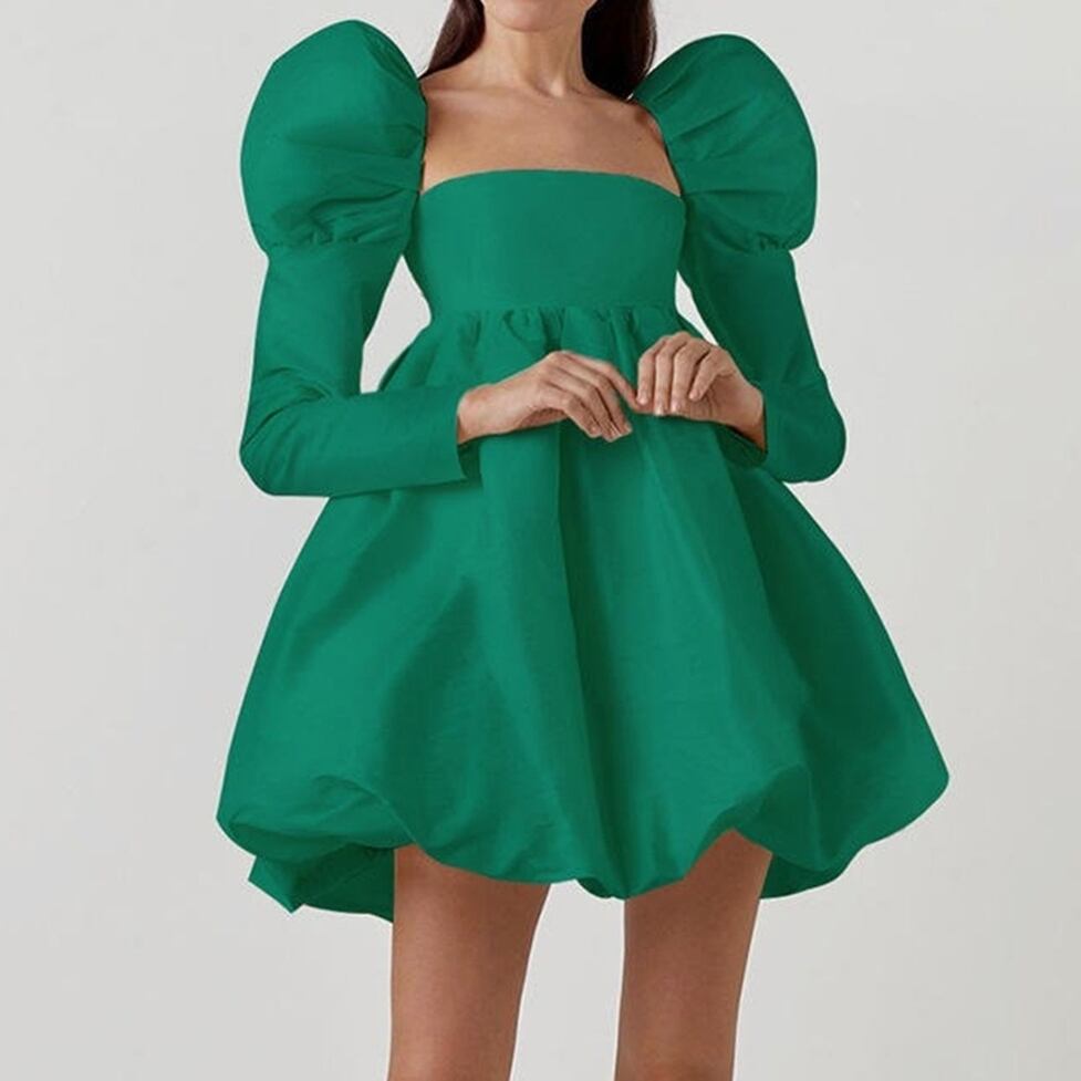 ワンピース ミニワンピース フレアワンピース ミニドレス ボリュームミニドレス フレアミニワンピース スクエアネック バルーンスリーブ 長袖 フレア ハイウエスト ミニ丈 ショート丈 無地 ドレスワンピ レディース かわいい 大人可愛い おしゃれ ガーリー エレガント キュート きれいめ 上品 お出かけ ショッピング 休日 デート イベント 体型カバー ゆったり スタイルUP デイリー フェミニン 脚長 美脚 クラシカル ラグジュアリー レトロ 高見え 鮮度アップ