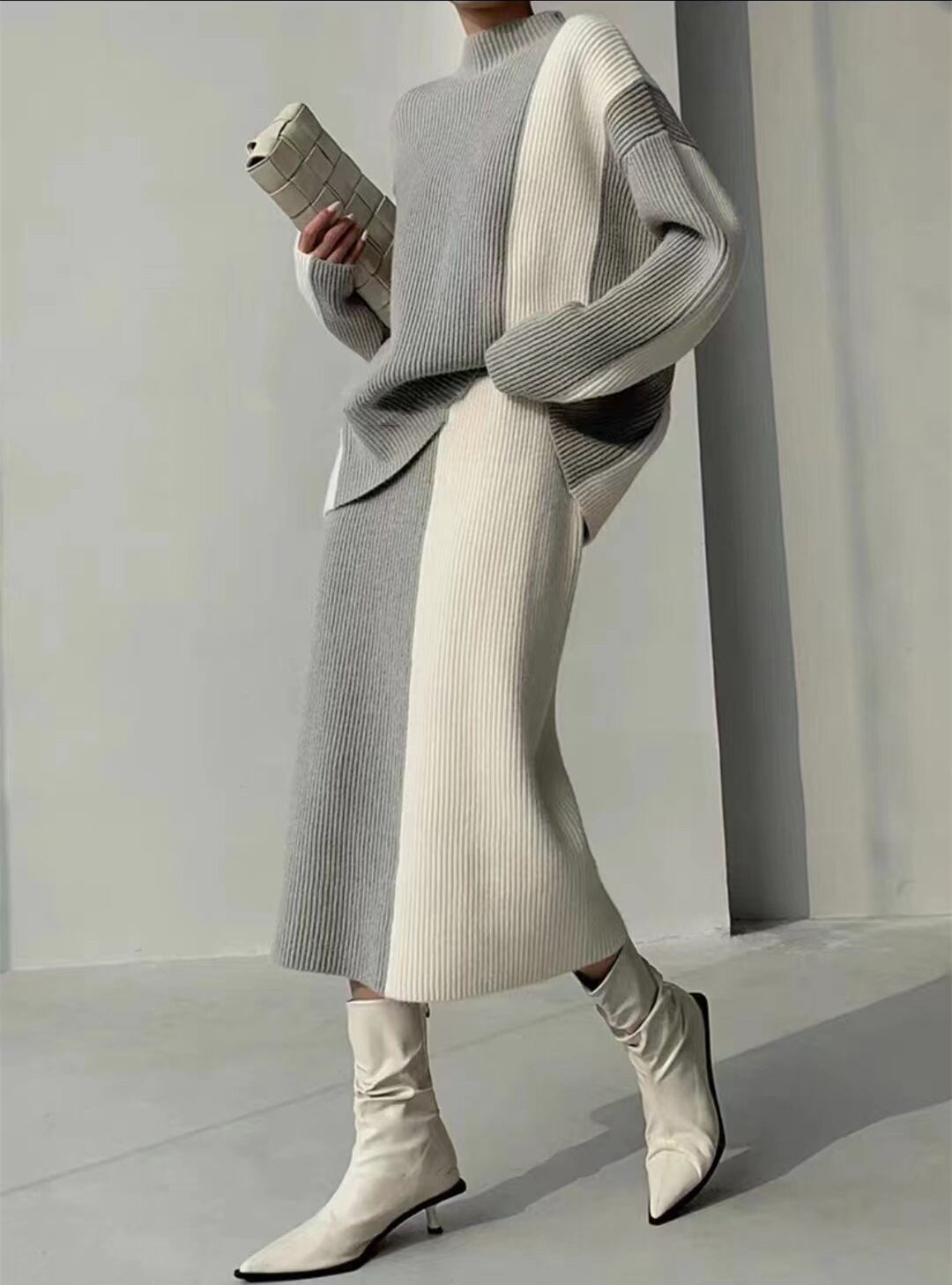 レディース スカート トップス ニット ツーピース ロング 長袖 レギュラースリーブ ハイネック タイト 厚手 ニット リブニット ポリエステル 大人可愛い カジュアル おしゃれ 個性的 存在感 スパンデックス ボーダー 秋 冬 オフィス ビジネス OL 通勤 デート お出かけ イベント リゾート 女子会 休日 バカンス ショッピング 普段使い ワンサイズ 白 黒 茶色 青