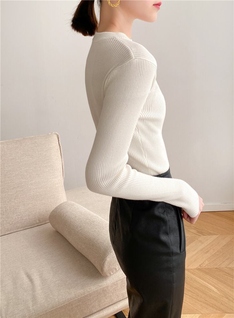 レディース トップス ニット セーターのご紹介です!シンプルでありながら個性的な存在感を放つこのタイトフィットのニットは、リブニット素材を使用し、ラウンドネックデザインで仕立てられています。ショート丈の長袖は、秋冬の多様なシーンにぴったりで、通勤やデート、休日のお出かけ、女子会などに大活躍します。