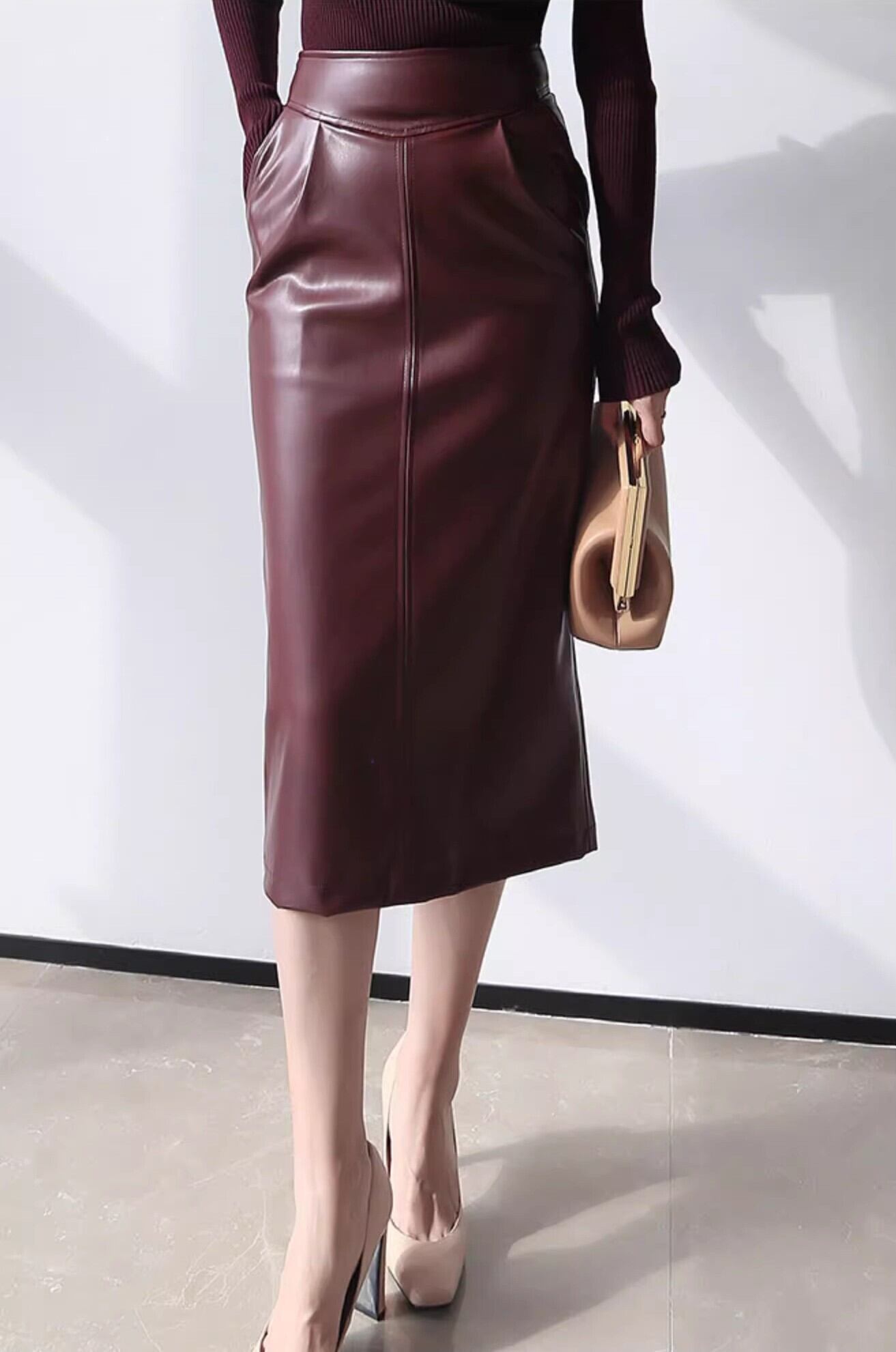 レディース スカート ミディアム スリム ハイウエスト レザー 大人可愛い きれいめ おしゃれ かっこいい ガーリー クール 都会的 無地 秋 冬 通勤 デート お出かけ お泊まり イベント 旅行 レストラン 公園 女子会 休日 ホテル ショッピング コンサート ライブ カフェ 韓国 コーデ 楽ちん プレゼント 美脚 脚長 普段使い 着回し モテ インスタ映え S XL 大きいサイズ レッド ライトブラウン
