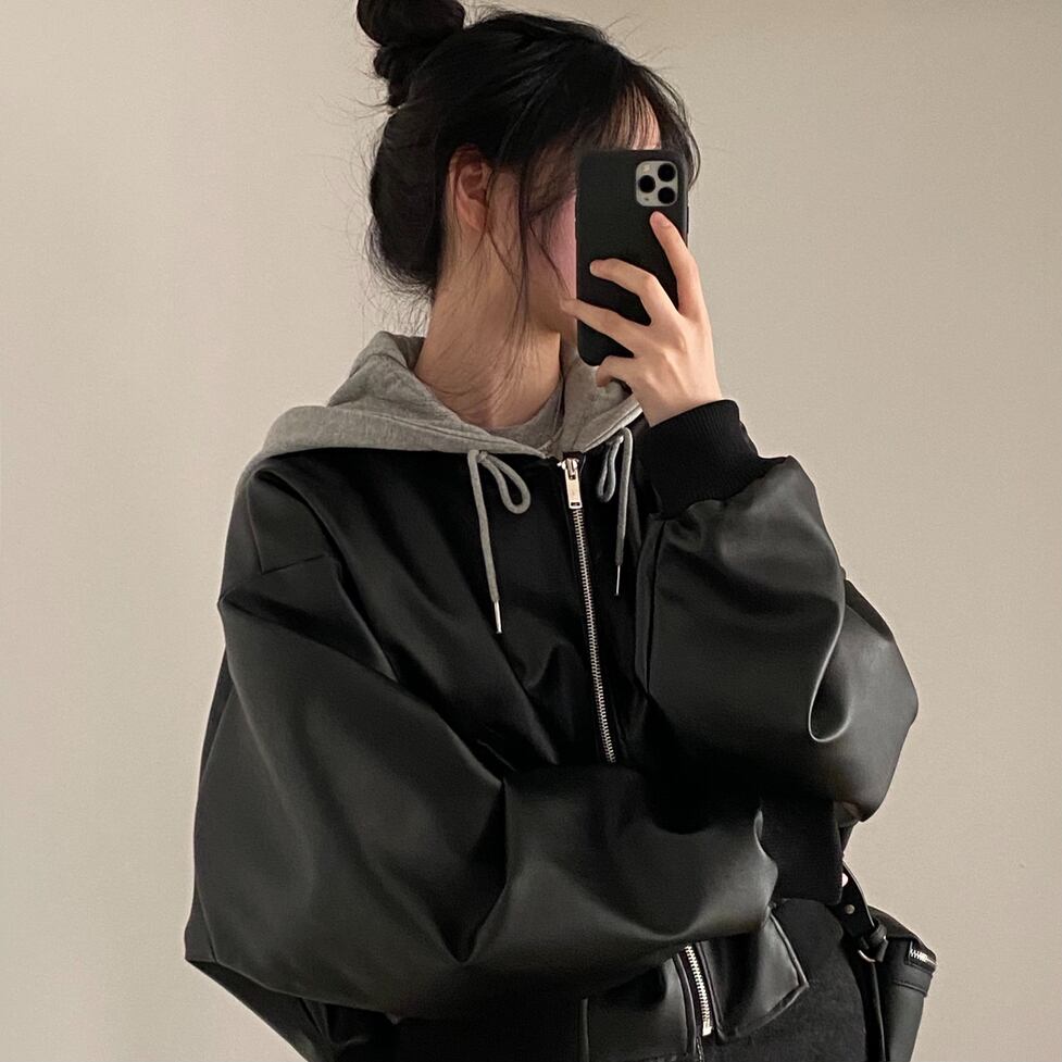 フェイクレザージャケット アウター フーディジャケット レザージャケット 異素材ドッキングレザージャケット フード付きフェイクレザージャケット メンズライク スウェットフード PU合皮 ジップアップ レディース かわいい 大人可愛い おしゃれ ガーリー エレガント キュート きれいめ 上品 お出かけ ショッピング 休日 通勤 通学 デート イベント 体型カバー ゆったり スタイルUP デイリー 万能 普段使い フェミニン カジュアル マニッシュ アクティブ 鮮度アップ