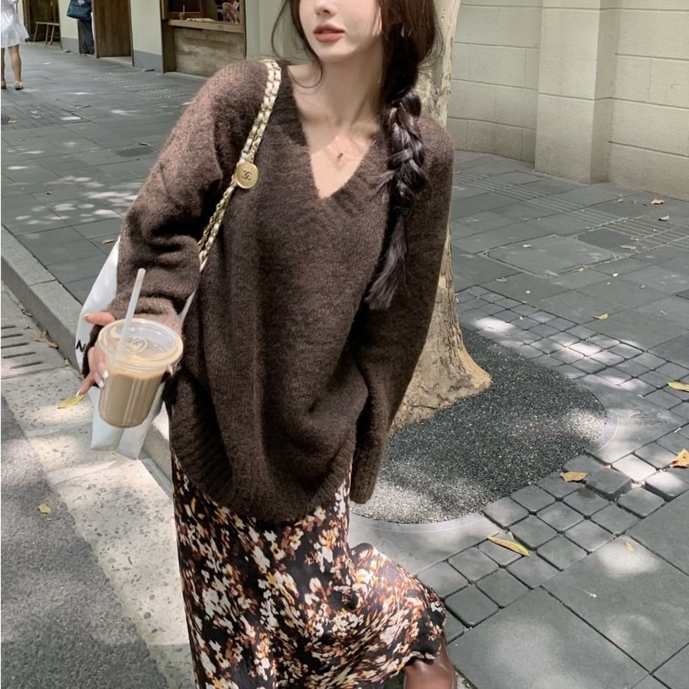 1枚持っているとレイヤードにもワードローブにも重宝するゆったりサイズのVネックニットプルオーバー。風格あるフォルムで期待以上のほっそり感が手に入る。次なるセンシュアルへ女っぽい表情を引き出す組み合わせを計算せずとも高い好感度に。奥行きを生む着方が印象的で心地よくキレイという理想のスタイルが完成。